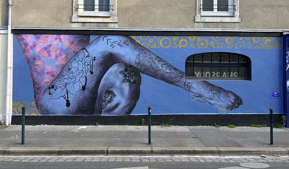 le mur Label Collab’ est situé à l’angle de la rue des olivettes et de la rue Baron à Nantes